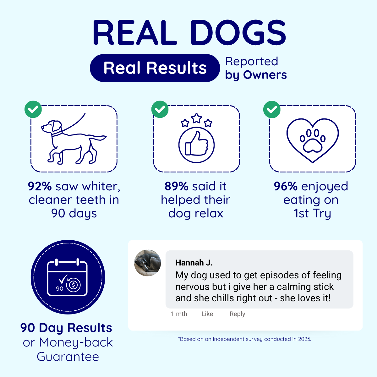 Many of our customers use these chews primarily for dental benefits and appreciate the calming support as a bonus during occasional stressful moments. Think of it as comprehensive daily wellness in one tasty chew—because prevention is always better than reaction.